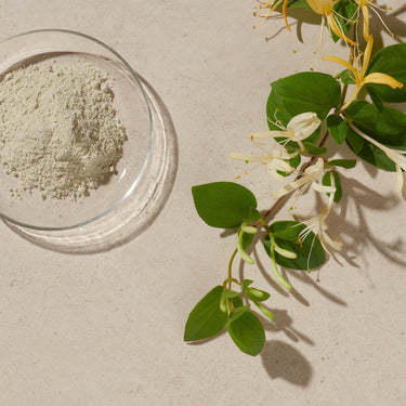 Clay Powder: Kaolin, Bentonite, Camellia Sinensis (Green Tea) Leaf Powder*, Carica Papaya (Papaya) Leaf Powder*, Chamomilla Recutita (Matricaria) Flower Powder*